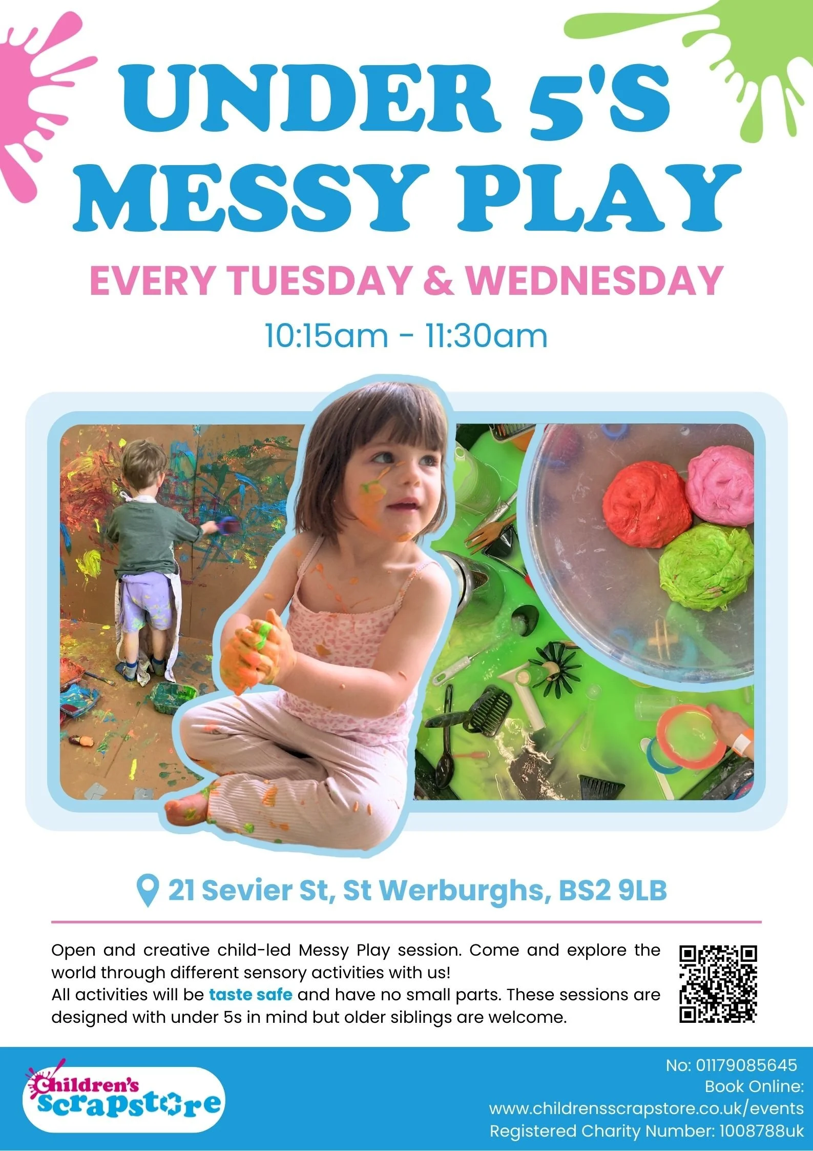 Come and explore the world through different messy and sensory activities with us! This is an open and creative child-led Messy Play session for under 5s. All activities will be taste safe with no small parts. The session is designed with under 5s in mind but older siblings are welcome. There are 32 spaces in this session but this includes adults.